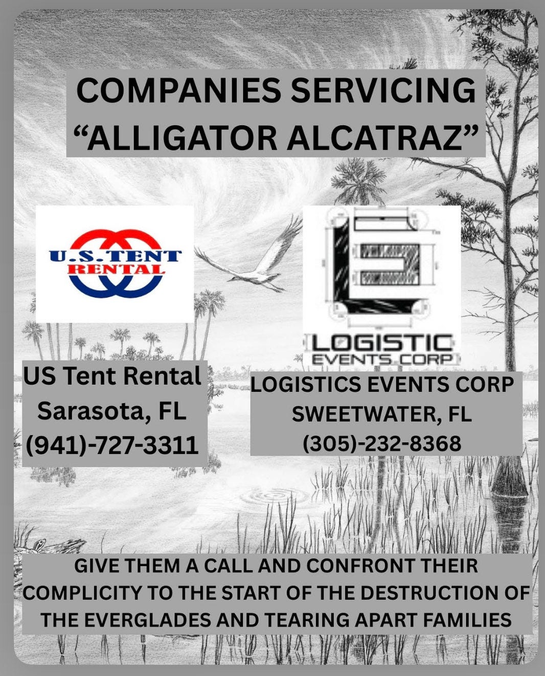 to tell them you stand with the Miccosukee to oppose the construction of this inhumane facility to hold 1000 souls on sacred tribal land that will wreak havoc on our unique critical and fragile Everglades.